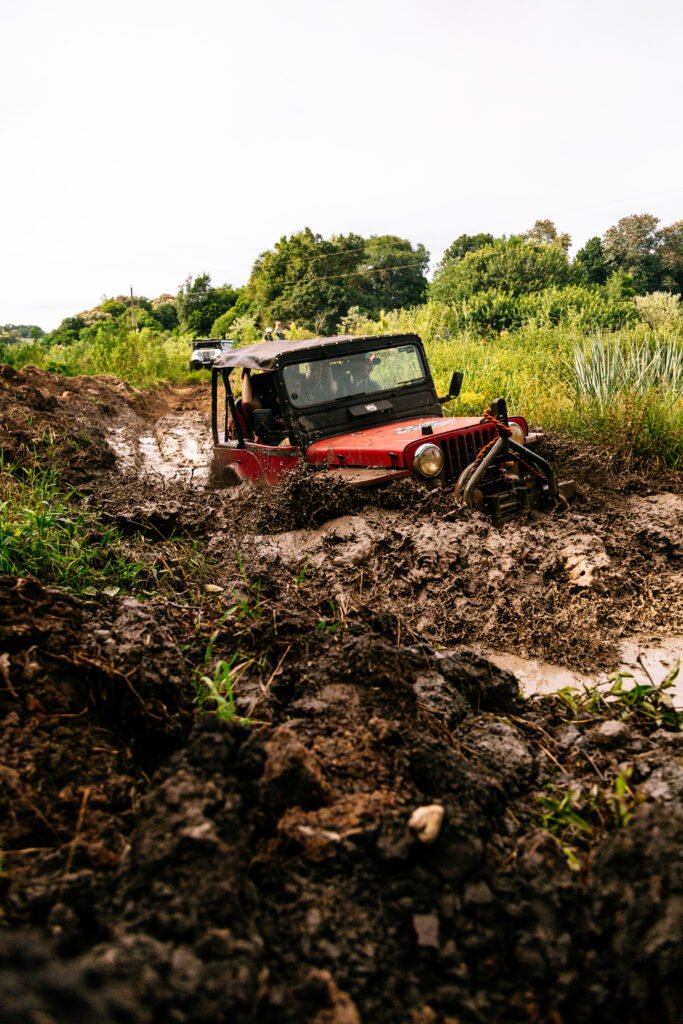 A tração 4X4 também é fundamental para garantir estabilidade em subidas com muito barro, mantendo o veículo firme e com resistência para não atolar.